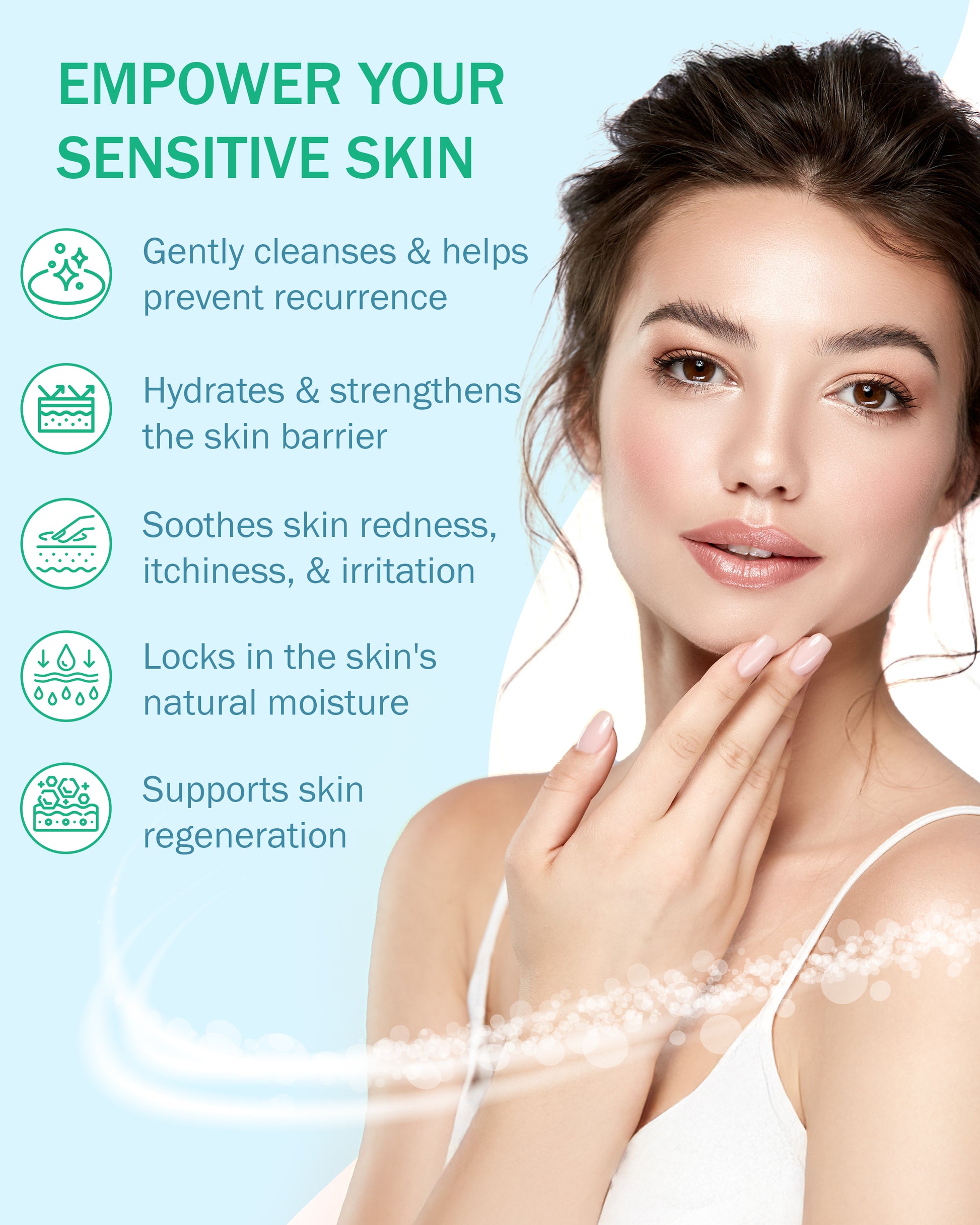 Made for Everyone: Our gentle body wash suits even the most delicate skin. Its safe, non-irritating, fragrance-free formula ensures gentle care for all skin types, offering calming, nourishing support for everyone.