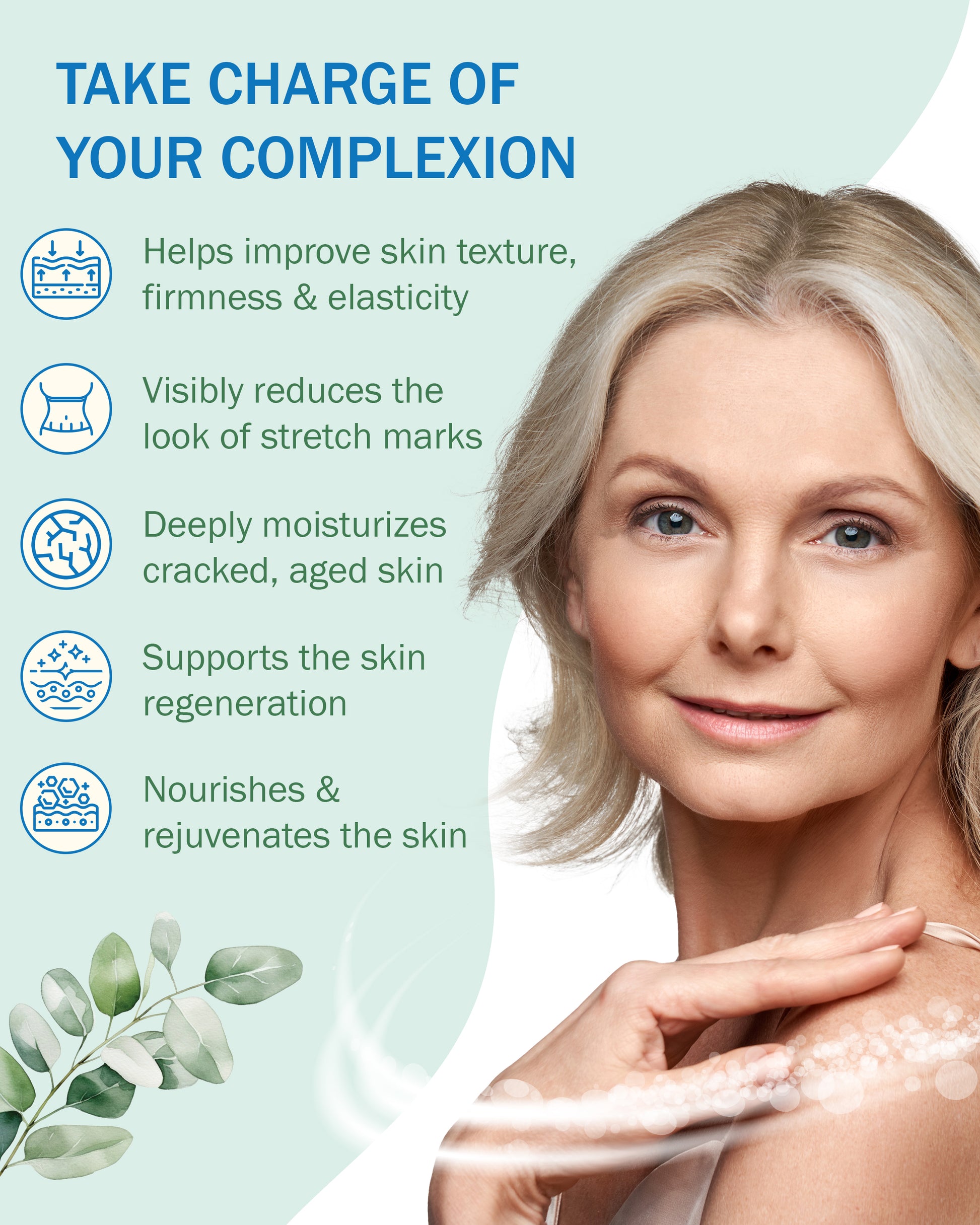 Achieve Firmer, Resilient Skin: Our stretchmark cream and dry skin oil duo delivers essential nutrients to support pre- and post-pregnancy skin and targets the arms and décolleté area, where crepey skin is common, strengthening the skin barrier for enhanced overall skin appearance.
