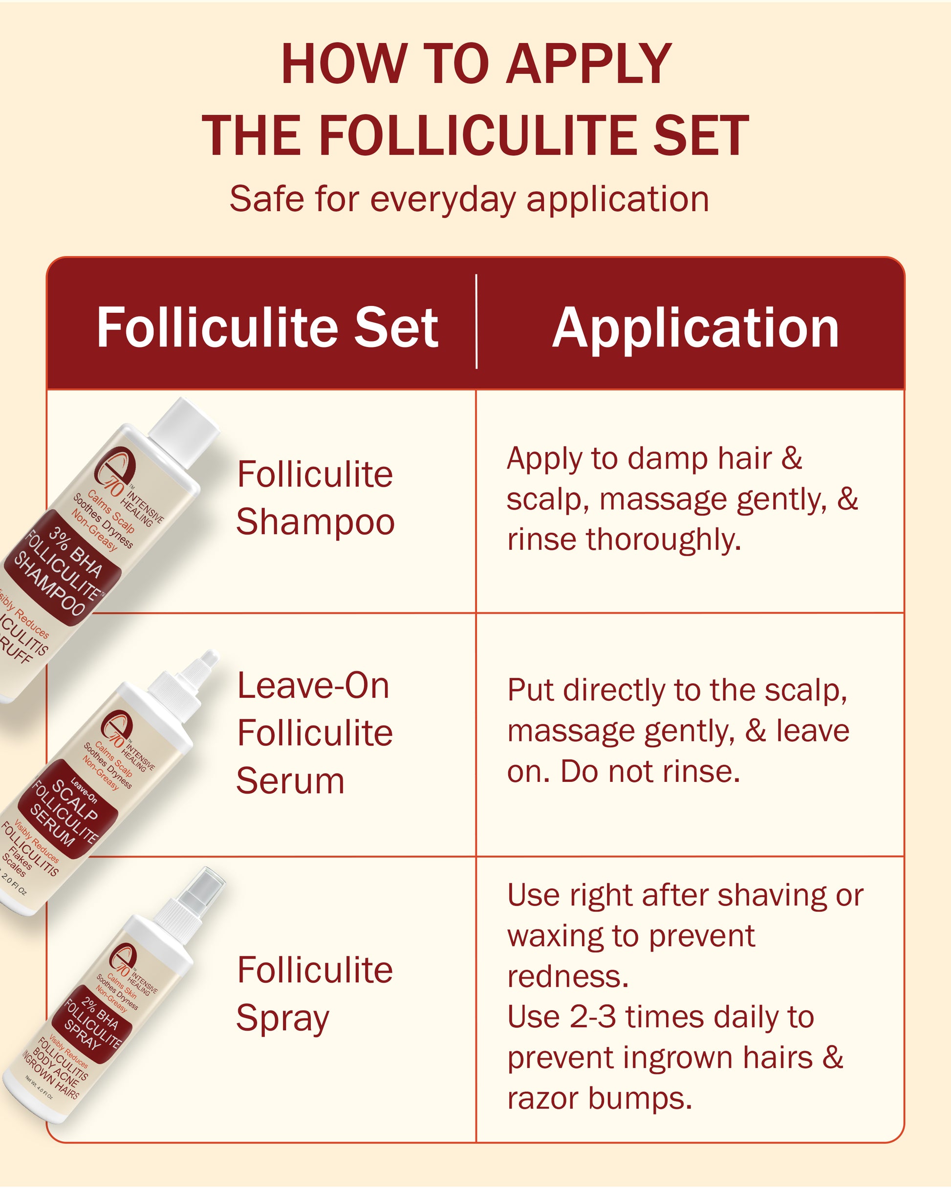 Lasting Protection from Root to Tip: Keep your delicate scalp clear and comfortable all day with our Leave-On Folliculite Scalp Serum . It locks in moisture and coats every strand with rich nutrients, soothing extremely dry scalp, itchy, flaky scalp, and other irritated skin discomforts.