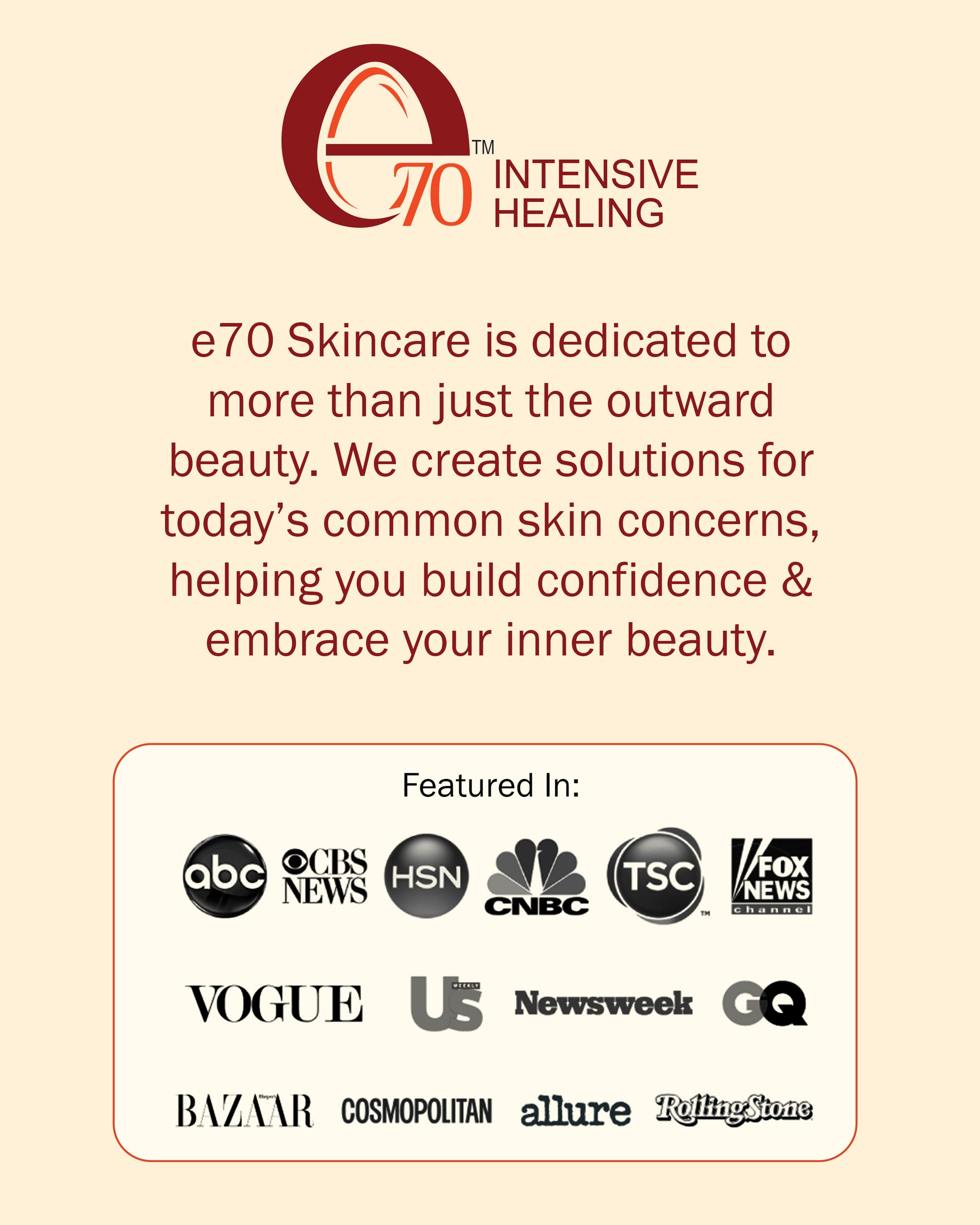 Confidence through Expert Skincare: e70 Skincare for everyone goes beyond outward beauty. We offer targeted solutions for common skin concerns to help you feel confident and embrace your inner radiance.