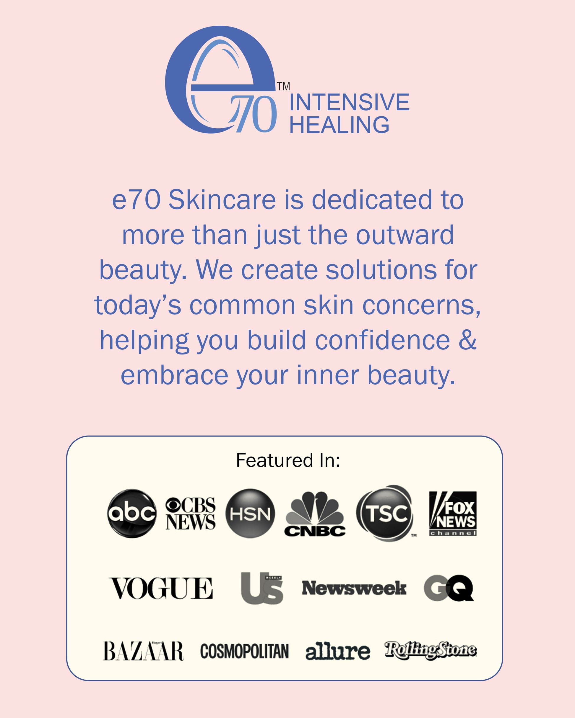 - Confidence through Expert Skincare: e70 skincare for women and men goes beyond outward beauty. We offer targeted solutions for common skin concerns to help you feel confident and embrace your inner radiance.