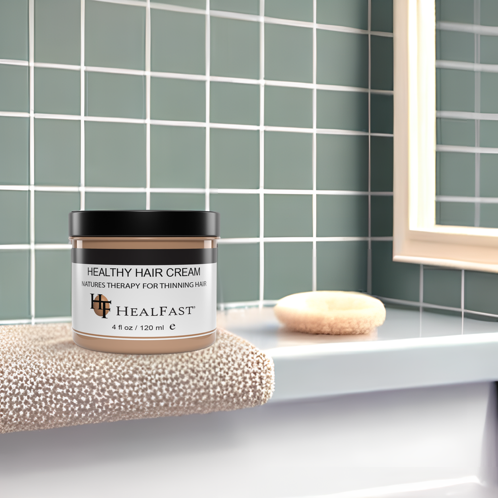 Our Healthy Hair Cream was created for thinning hair problems and to help stop excessive hair fallout within one jar’s use. It’s simple and easy to use.