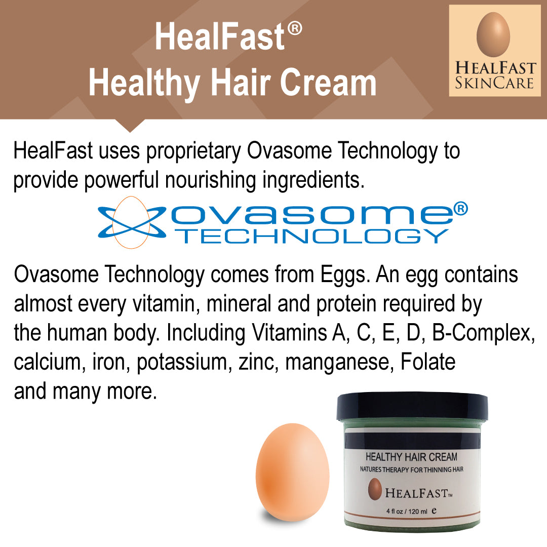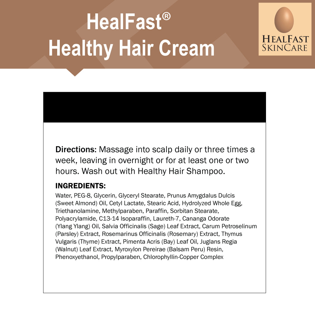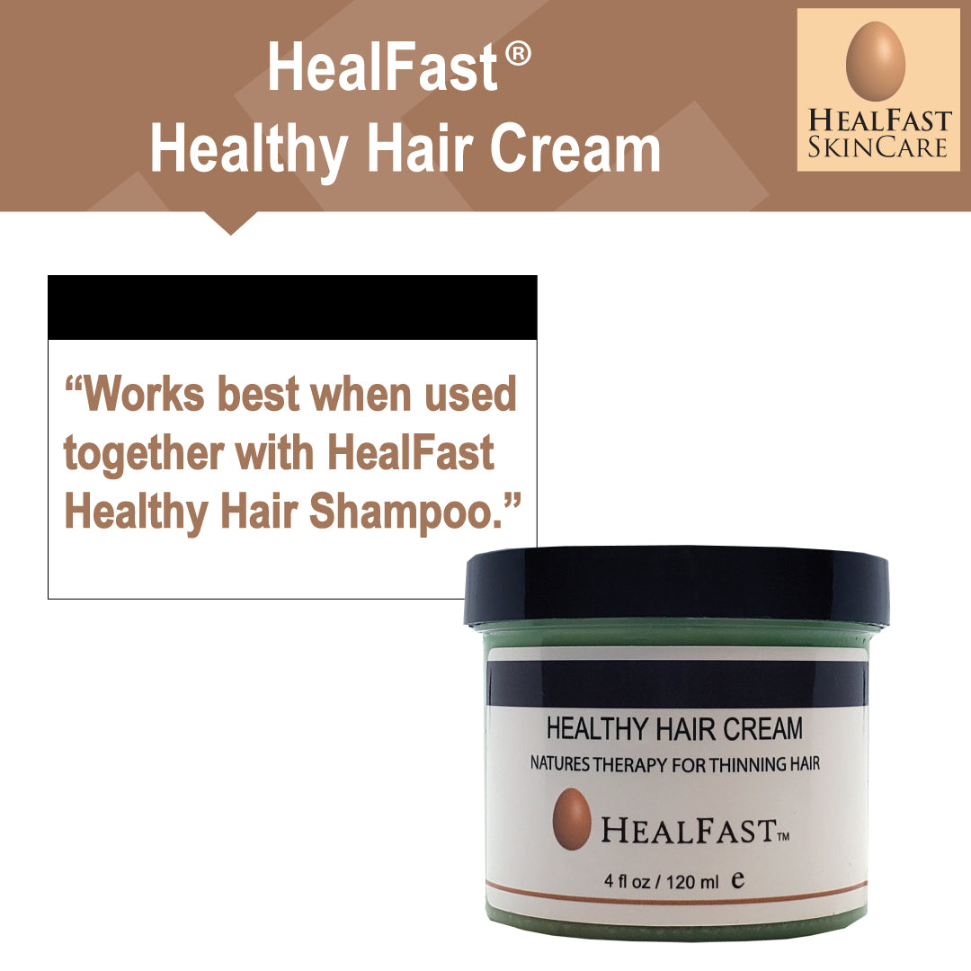 Healthy Hair Cream delivers over 70 vitamins, minerals and proteins to the scalp and feeds the follicles with the nutrients necessary to produce long healthy hair. If used on a regular basis, this cream will eventually normalize the cycles and the hair will grow thick and healthy once again.