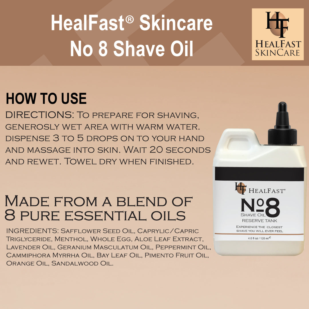 For men of any age or skin type, from rigid skin & hair to the most sensitive skin, No 8 Shave oil works equally great to protect your skin from razor drag, razor burns, red bumps, ingrown hair, nicks or cuts.